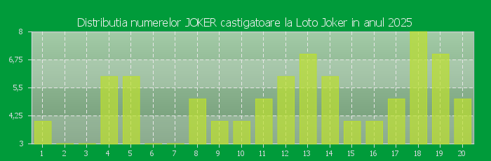 Distributia numerelor JOKER castigatoare Loto Joker in anul 2025